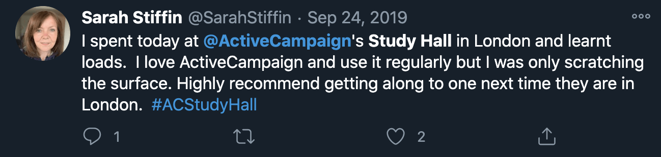 Much of ActiveCampaign’s success flowed from their ability to engage with their customers at events. Unsurprisingly, these events took a nosedive in 2020, and ActiveCampaign’s Study Halls went fully online. But they’re still seeing a lot of success and have adapted their Study Hall series to accommodate their customers’ shifting schedules. What was a one day event is now a three day event across a few weeks.