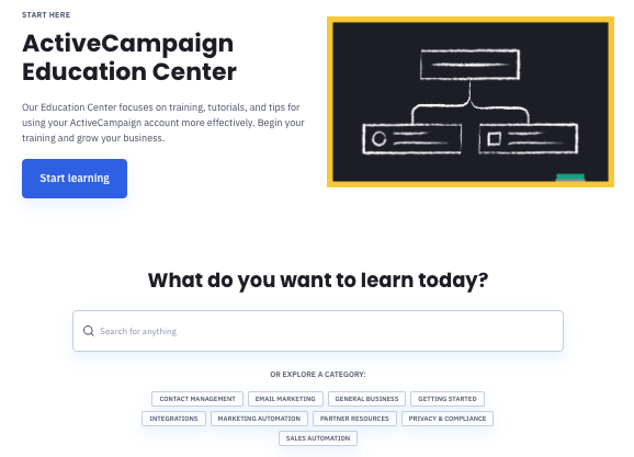 We’d also like to point out that ActiveCampaign makes it really easy for customers and prospects to learn about all of their integrations in their education center.