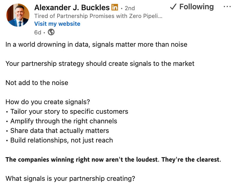 To help us close this gap, we sat down with Alex Buckles, who gave us the formula to turn partnerships from noise to numbers.
