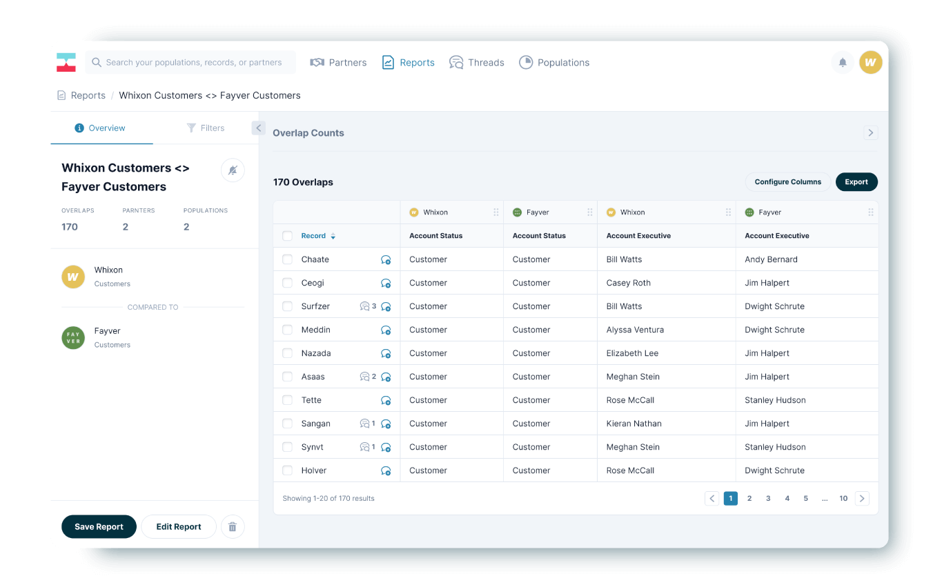Klekas regularly reviews Crossbeam reports during his partner check-ins and can rest assured knowing the information is up-to-date. “Being able to very clearly see a partner’s customers that overlap with our ideal customer profile list is very important. And in Crossbeam, it’s really simple,” says Klekas.